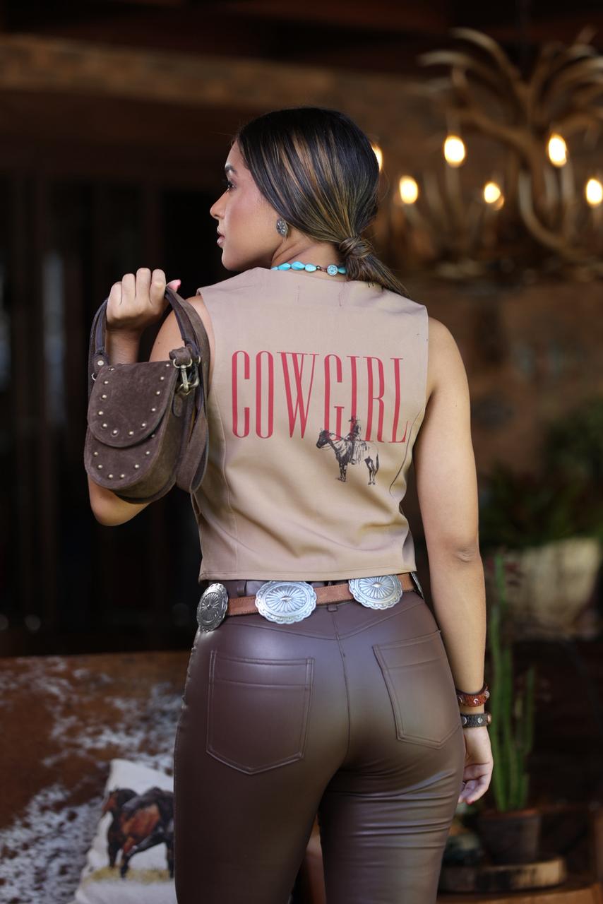 Colete Fort worth Feito e couro natural de pelo com pesponto em couro camurça. Fabricado a mão ! A estampa pode variar de acordo com…