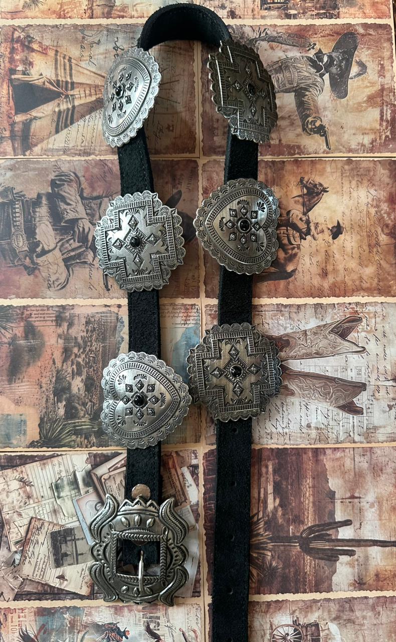 Cinto no couro preto, com conchos e detalhes de pedras importadas, perfeito que deu todo charme